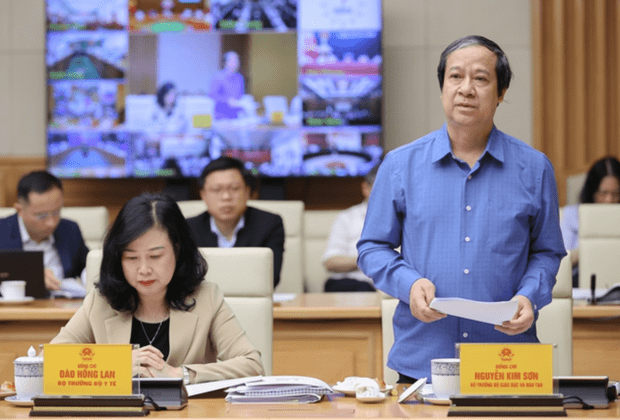 Bộ trưởng Bộ GD&ĐT Nguyễn Kim Sơn phát biểu tại phiên họp – Ảnh: VGP/Nhật Bắc